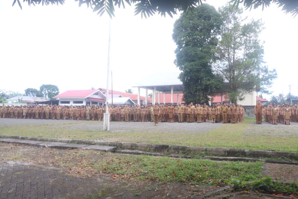 “Apel kerja ini bukan sekadar rutinitas, tetapi menjadi langkah awal yang baik dalam membentuk perilaku disiplin, menumbuhkan rasa kebersamaan dan kekeluargaan dalam melaksanakan tugas dan tanggung jawab kita,” ujar Sekda membacakan sambutan.