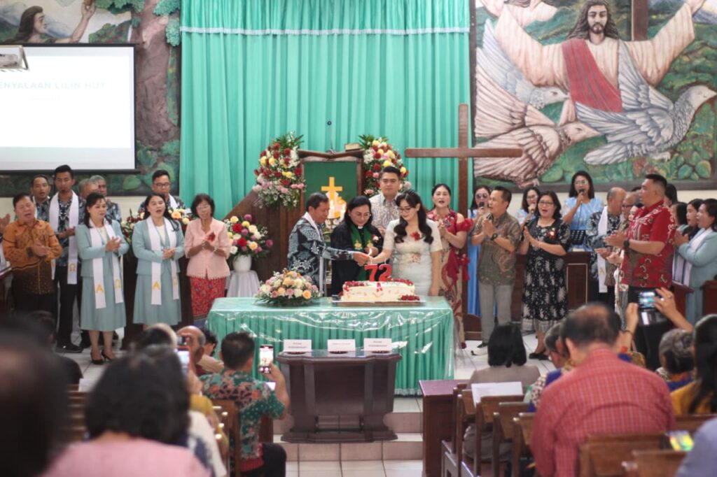 Hadir juga Ketua Panitia HUT ke-72 Pnt. Wisye Paat-Lomboan, S.H., jajaran panitia, Anggota DPRD Kota Tomohon Drs. Haryanto Lasut, M.A.P., Abraham Wakas, S.Si., M.Ak., dan Anita Mamesah; para hamba Tuhan yang pernah melayani; serta seluruh anggota jemaat dari kolom 1–13